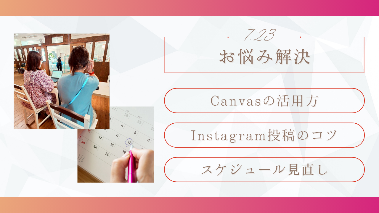 Canvasの活用方はもちろん、Instagramでの投稿のコツなども教えていただき、自分のこれまでの発信を見直すこともできました✨今後のスケジューリングまで一緒に考えていただき、とても心強かったです☺️
